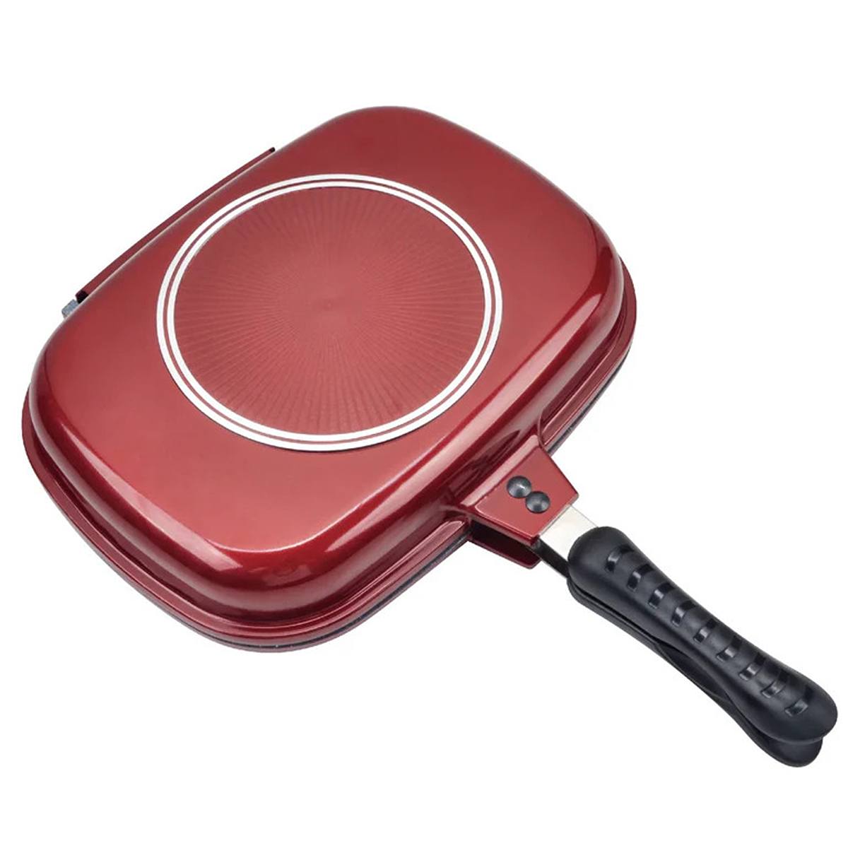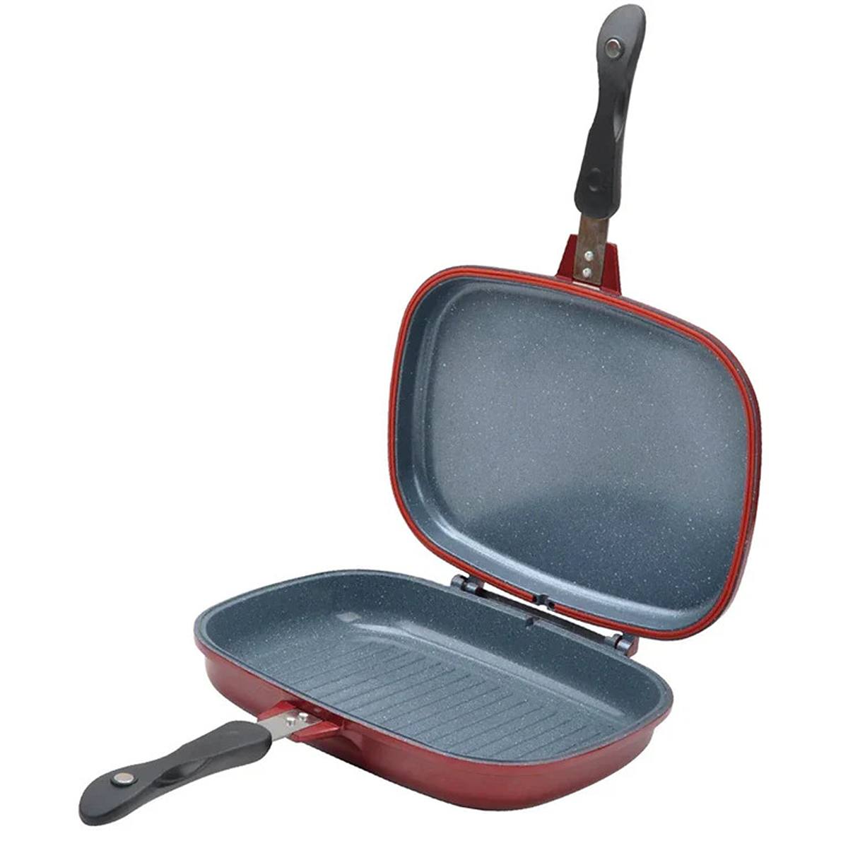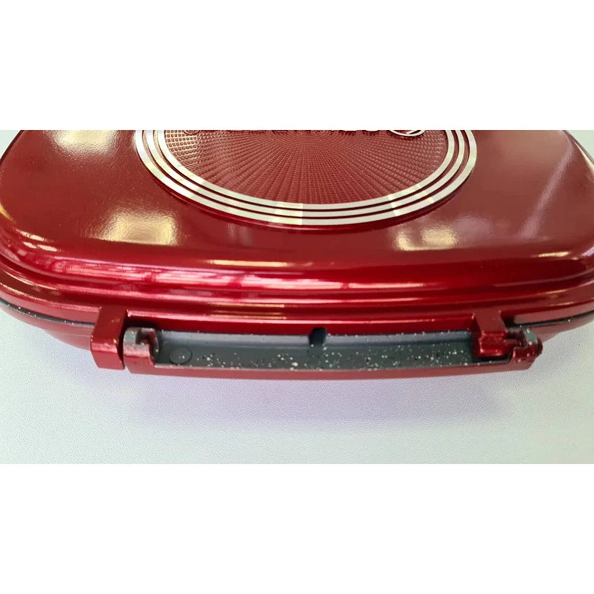 - Tigaie dubla din aluminiu, interior placat cu ceramica marmorata, inchidere magnetica, inel din silicon, 32 x 22 x 7.50 cm,